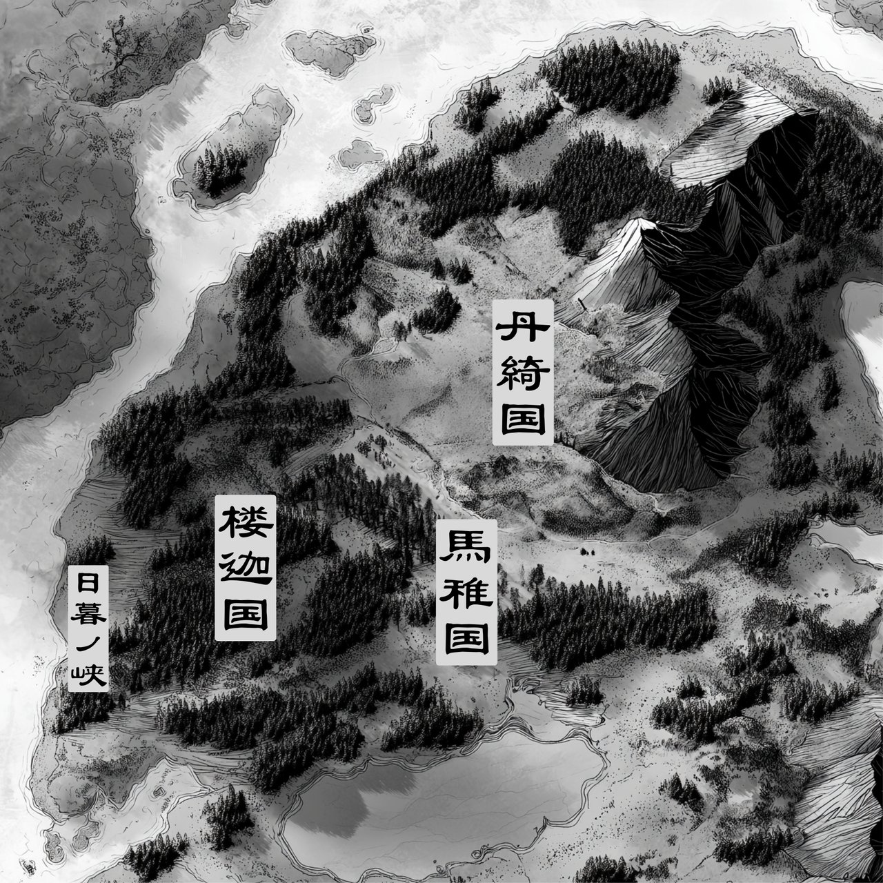 A country on the plains that spreads out to the northeast of Umawakuni. A militant nation that claims to dominate the plains, it is said to be ruled by a fearsome demonic queen. Its capital is Shuro, also known as the Vermilion City.